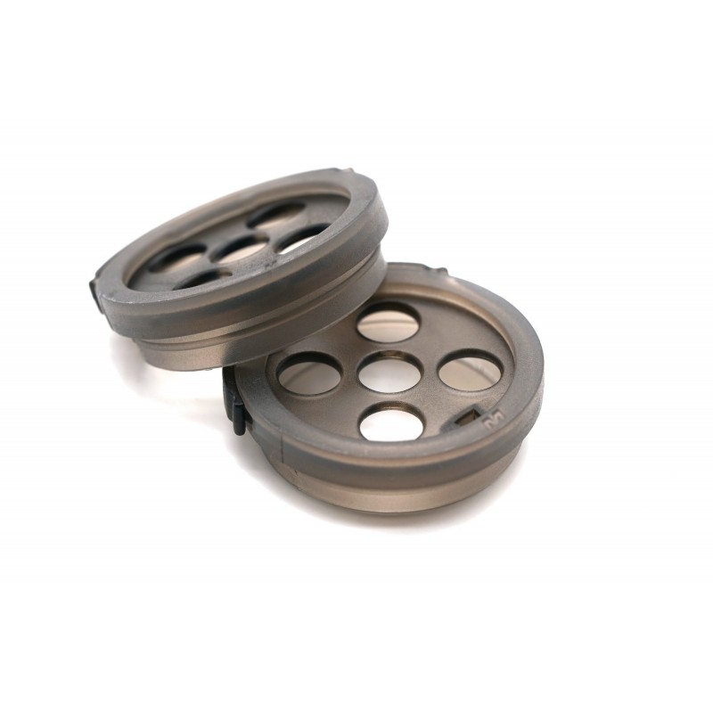 These sprinkle lids, fit Guru Medium and Large Pole Pots. They allow your chosen bait to be dispatched in much smaller amounts. Used as an alternative to using the large and medium apertures of the standard lid that comes with those Pole Pots.