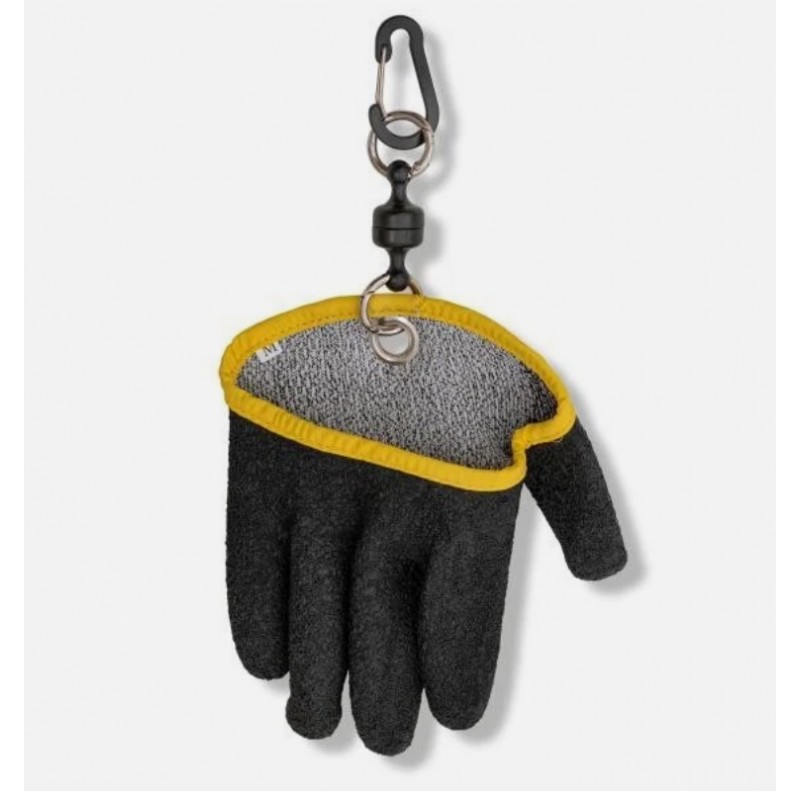 MAGNETIC: With a light pull, the magnetic clip releases the glove from the magnetic suspension.