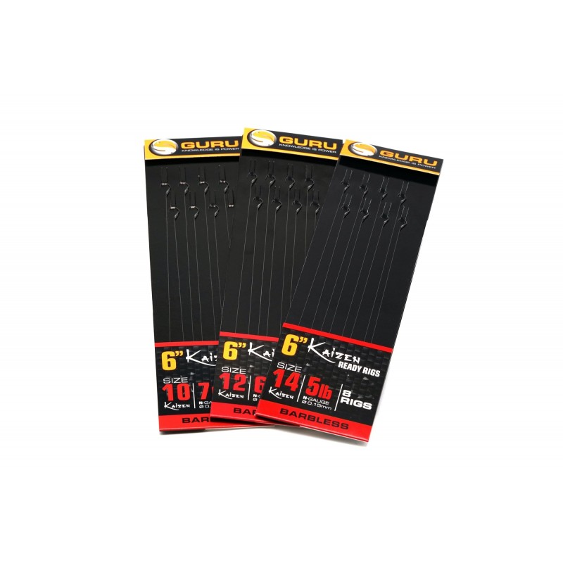 The Guru Kaizen 6” Ready Rigs are the perfect hooklength to cover all your commercial pole fishing needs. Primarily designed to be used for F1’s and carp the Kaizen Ready Rigs feature the ever-popular Kaizen Spade End PTFE coated barbless hooks.