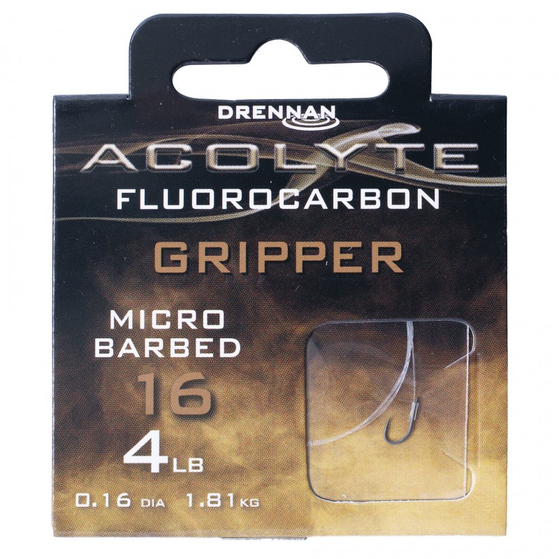 Acolyte Gripper micro barbed hooks hand tied to 50cm of Acolyte Fluorocarbon giving superior bait presentation for both float and feeder fishing.