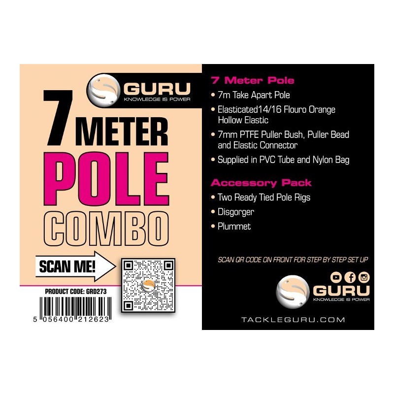 The Guru 700XS 7.0M Pole Combo, the perfect all-in-one solution for both beginners and anglers looking improve their pole fishing skills. Designed for short-range pole fishing, this high-performance pole is the ideal choice for targeting a variety of fish, from silvers to larger carp, with ease and precision.