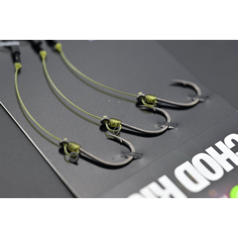 Two different versions are available, Long or Short, depending on what type of presentation you are looking to achieve, with Short often being favoured on a naked chod set-up. Each Chod Rig is finished with a Ring Swivel to allow them to be threaded directly onto your main line or leader. They come with barbed or barbless hooks in sizes 4, 6, 8 or 10, with 15lb, 20lb or 25lb Mouth Trap (depending on the hook size). Each pack contains three Chod Rigs.