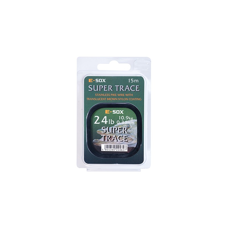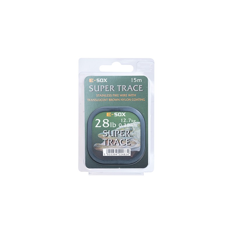 E-Sox Super Trace Pike Wire consists of our stainless steel Super 7 wire with a translucent brown nylon coating.